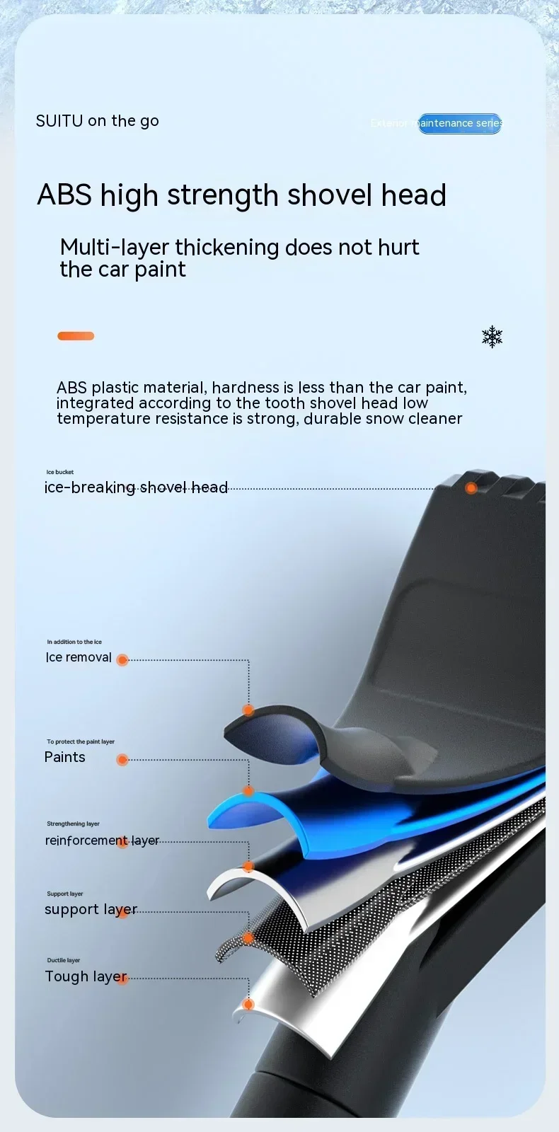 The ergonomic EVA foam handle is soft, flexible, and anti-aging, ensuring a comfortable grip even in cold weather. The integrated aluminum rod provides extra strength and durability, while the shovel and brush combination adds convenience for multiple uses. Suitable for general-purpose cars, electric vehicles, bicycles, and even snowy household surfaces like glass doors and windows, this tool helps you tackle winter snow safely. Note: Avoid direct contact between the pointed shovel edge and car paint to prevent scratches.